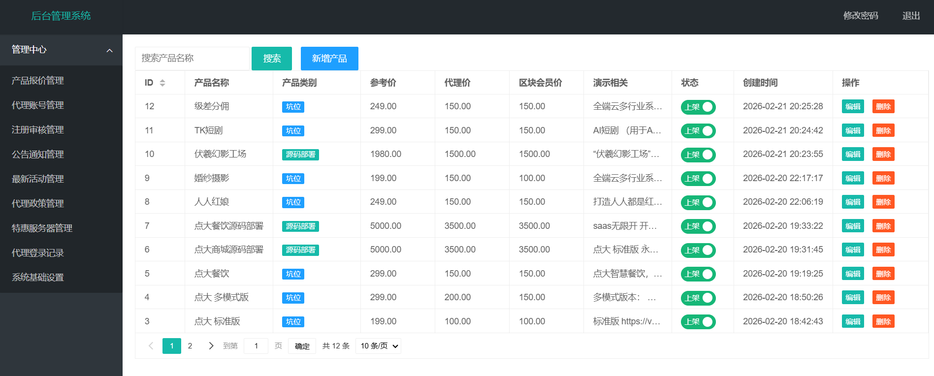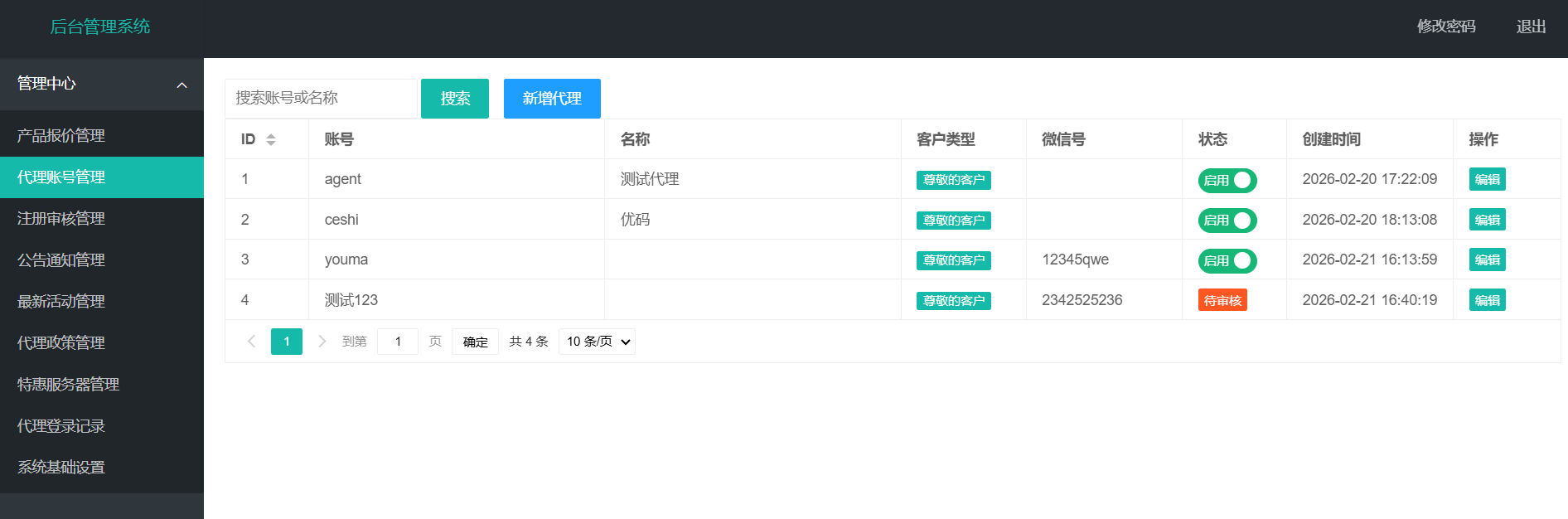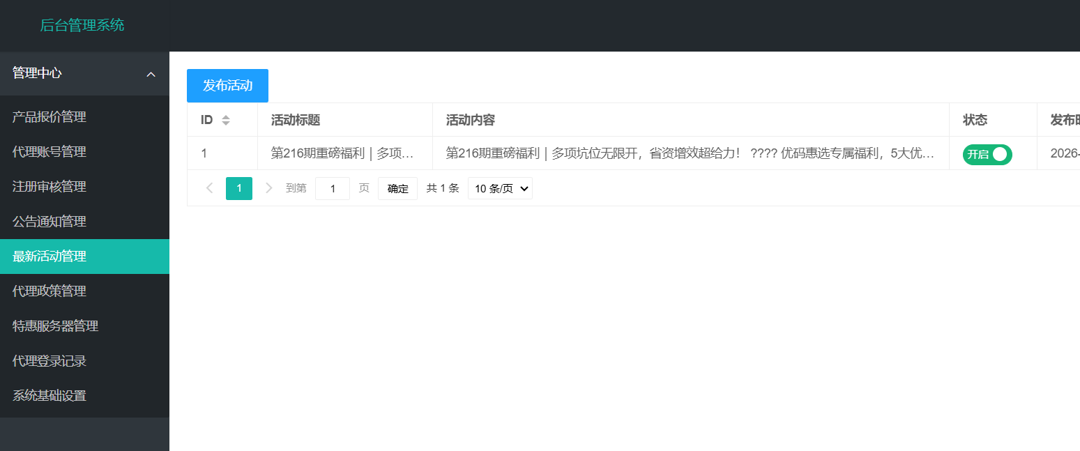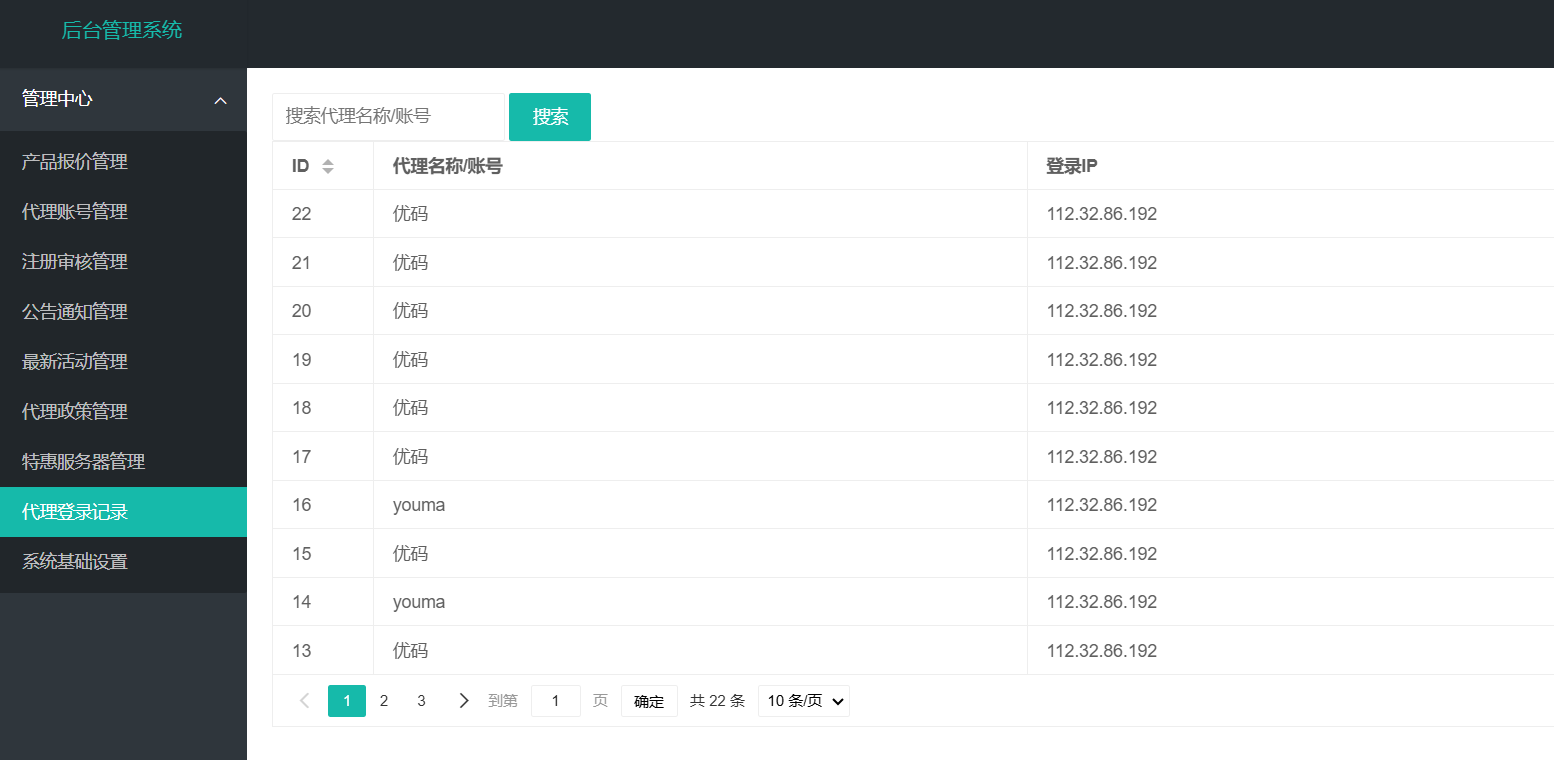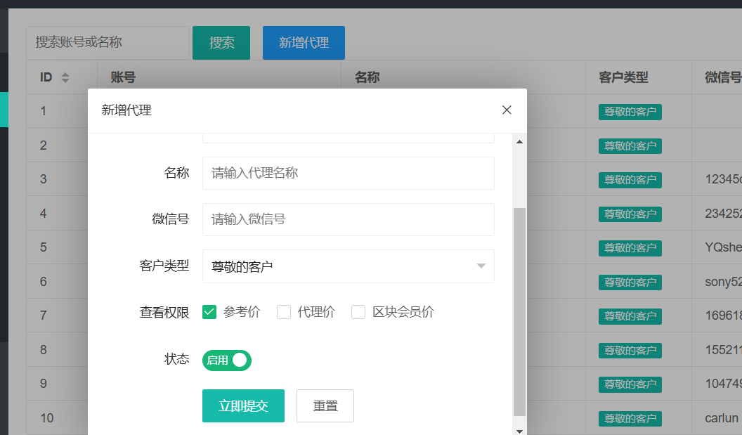 总后台,代理端